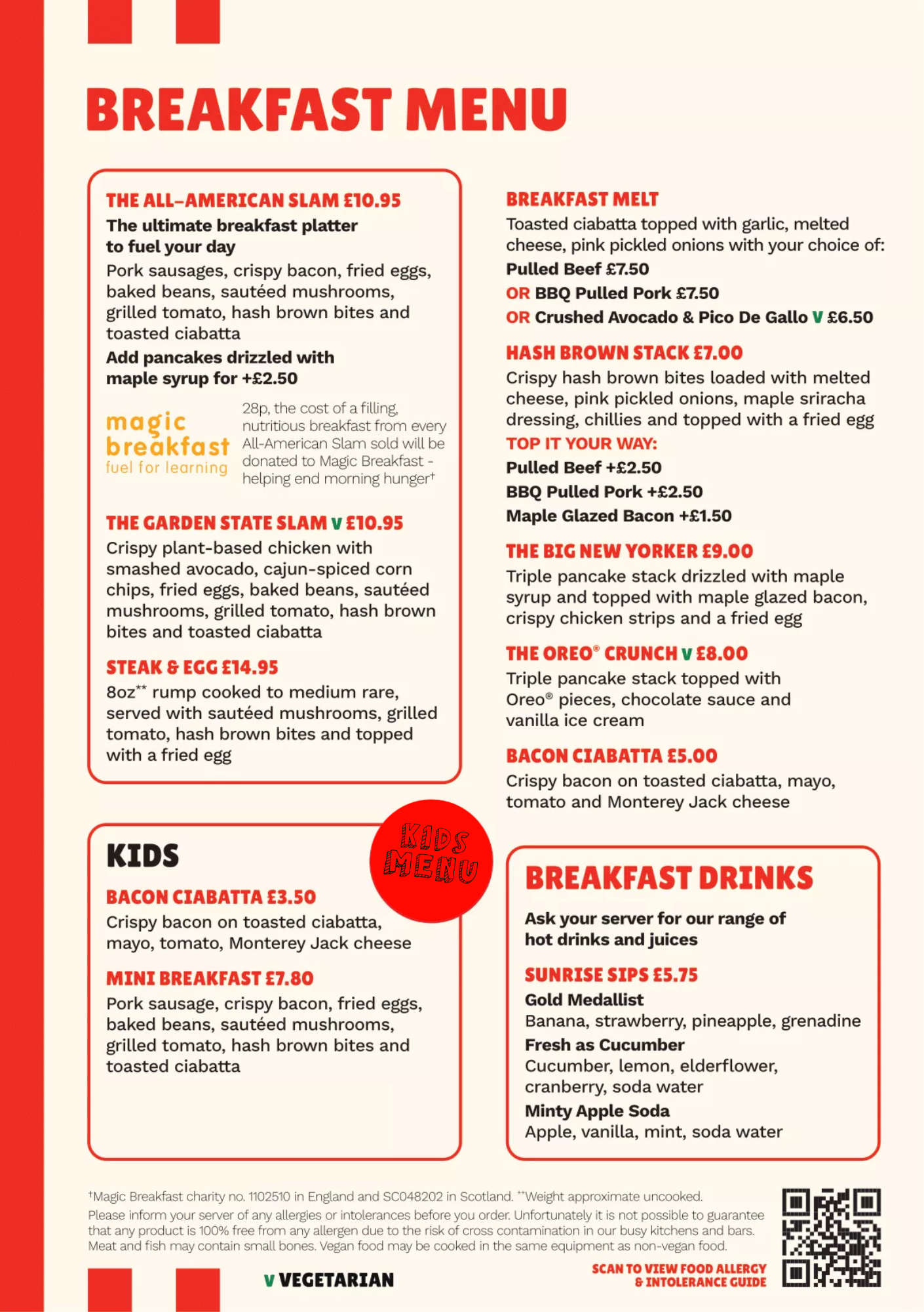 Start your day the American way with our Rise & Dine breakfast menu starting at just £5.